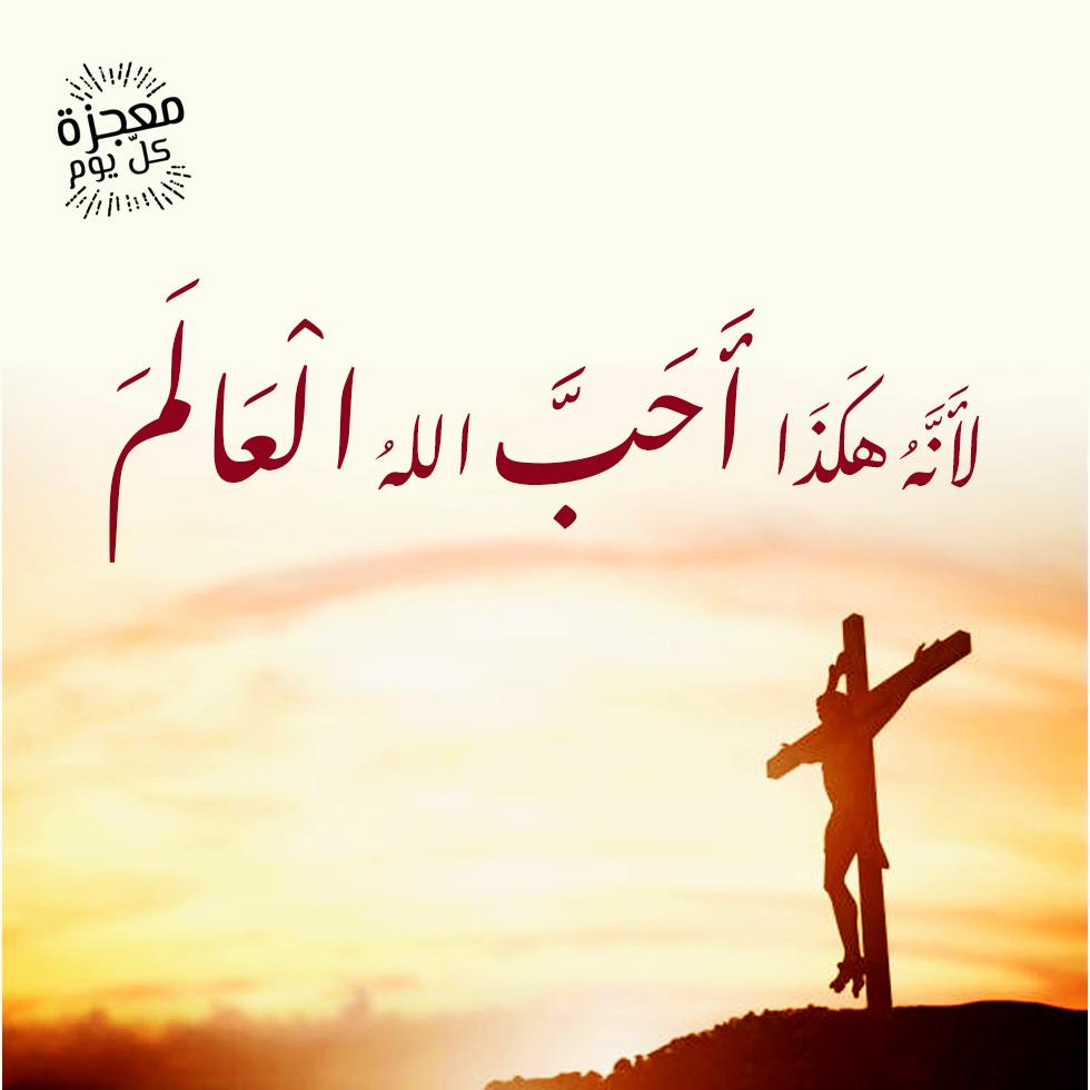"لأَنَّهُ هكَذَا أَحَبَّ اللهُ الْعَالَمَ حَتَّى بَذَلَ ابْنَهُ الْوَحِيدَ، لِكَيْ لاَ يَهْلِكَ كُلُّ مَنْ يُؤْمِنُ بِهِ، بَلْ تَكُونُ لَهُ الْحَيَاةُ الأَبَدِيَّةُ." (يوحنا 3: 16).