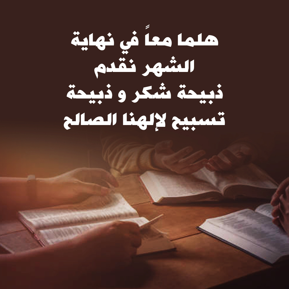 هلما معاً في نهاية الشهر نقدم ذبيحة شكر وذبيحة تسبيح لإلهنا الصالح